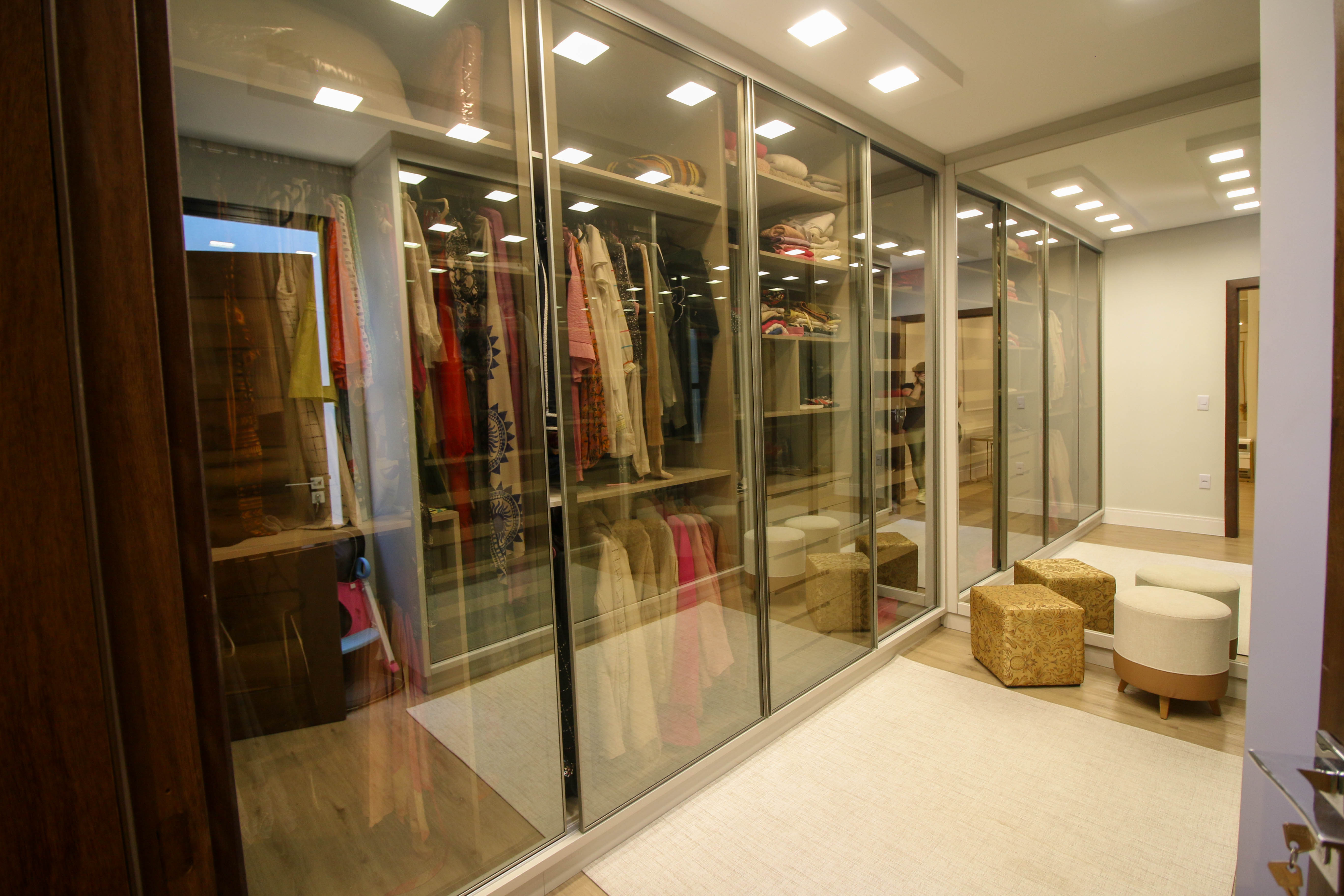 Um closet amplo e sofisticado, projetado para oferecer praticidade e beleza. Cada detalhe foi planejado para otimizar espaços e proporcionar um ambiente exclusivo e moderno.