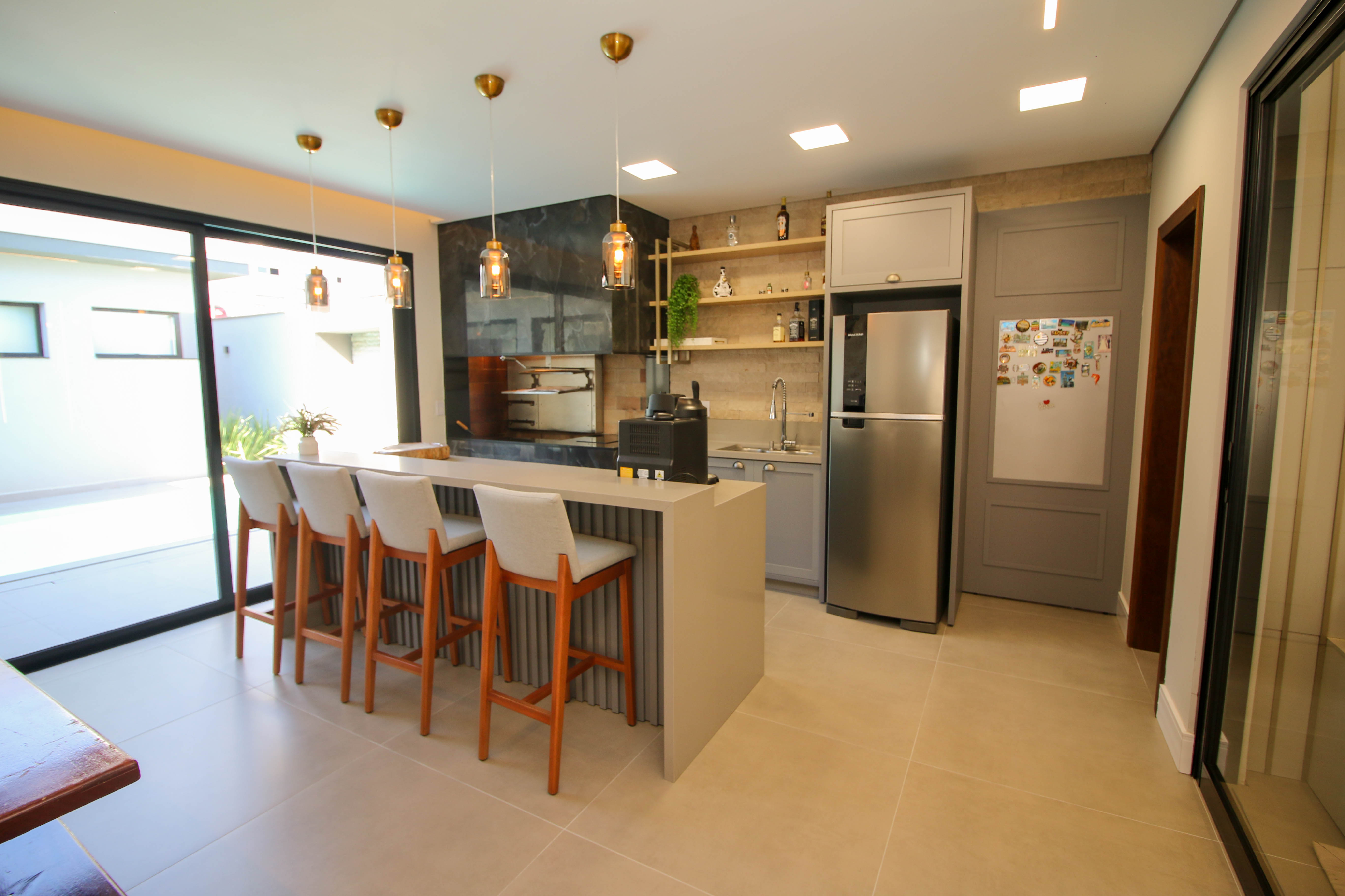 O espaço perfeito para receber amigos e familiares. Móveis planejados que unem funcionalidade, sofisticação e design moderno, transformando o lazer em uma experiência única.